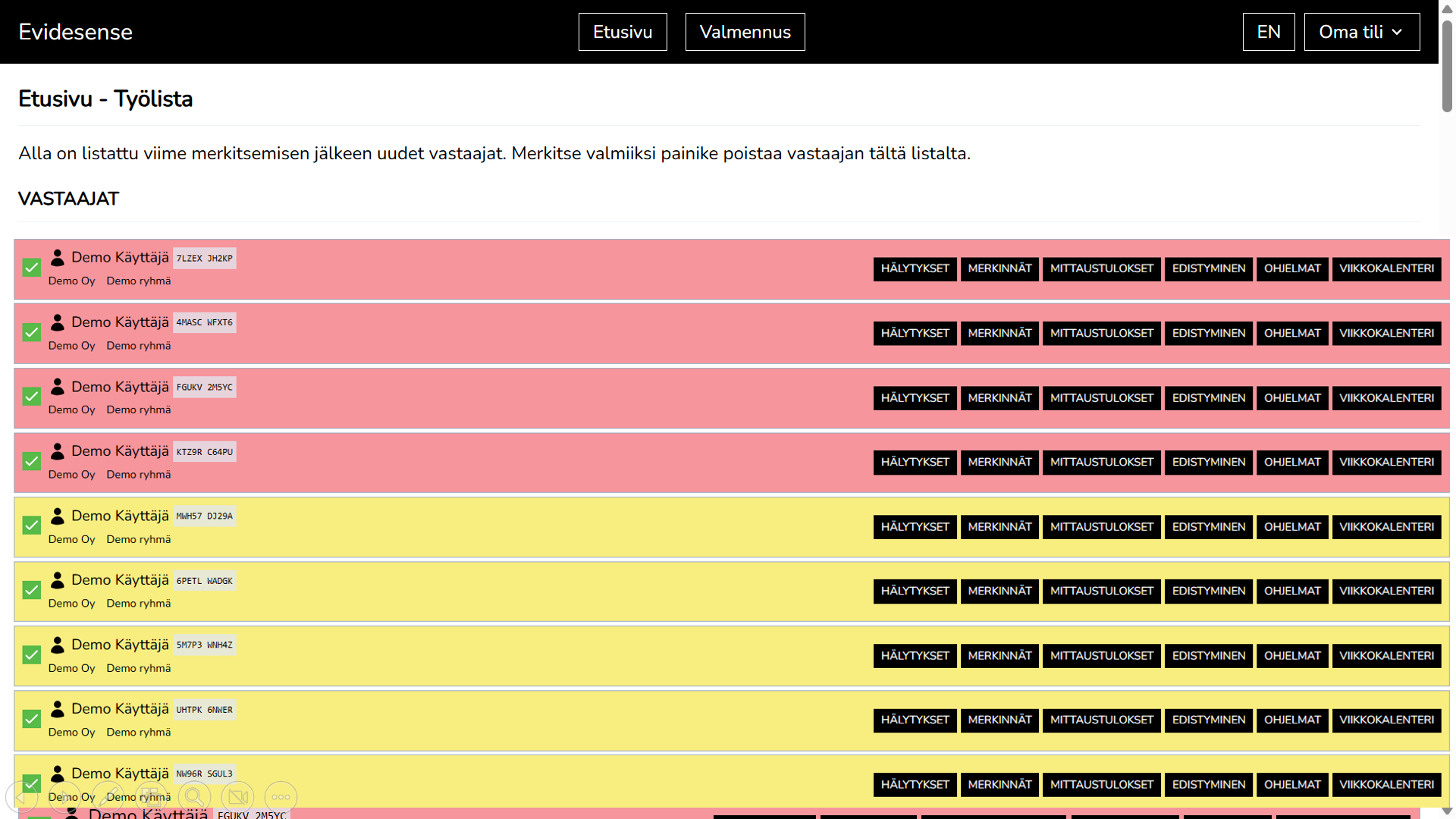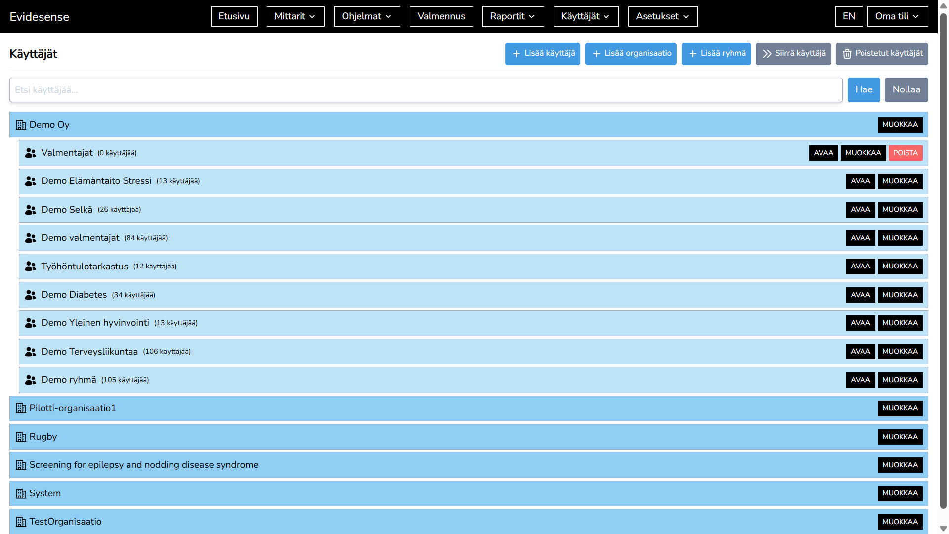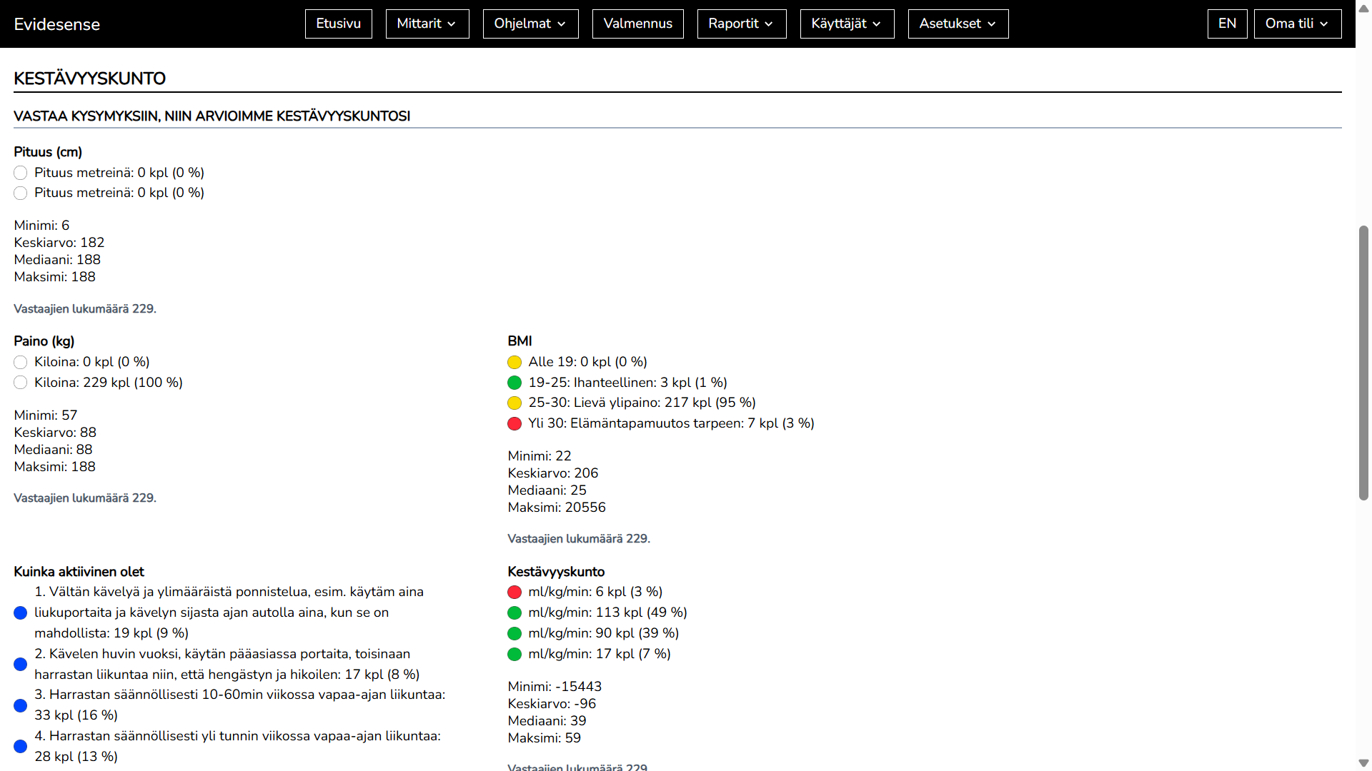 › Löydä valmennettavien lista, joka on järjestetty mittaustulosten mukaan